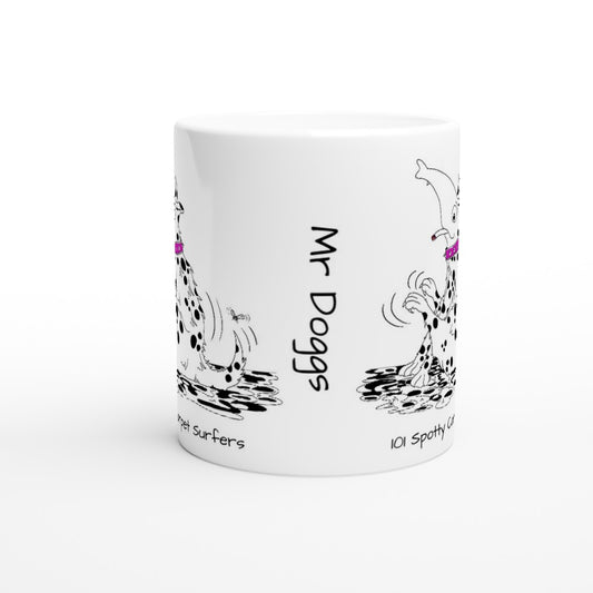 Humorous Printed Mug featuring Mr Doggs 101 Spotty Carpet Surfers 2