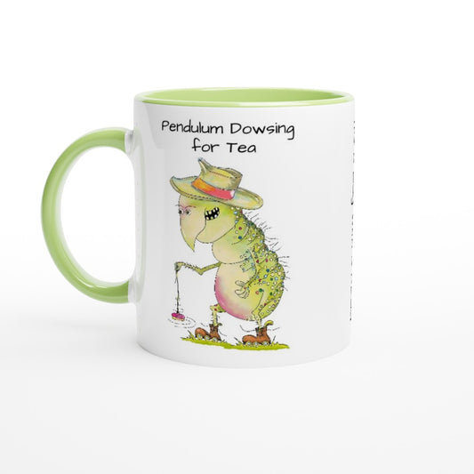 Pendulum Dowsing for Tea. Bug with a plug. White 11oz Ceramic Mug with Colour Inside