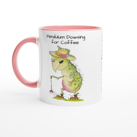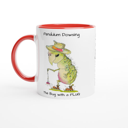 Pendulum Dowsing with a bug with a plug. Bug on a Mug. White 11oz Ceramic Mug with Colour Inside