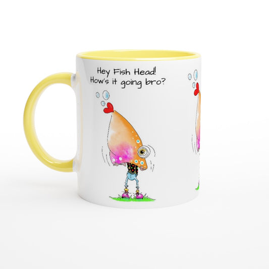 Hey Fish Head White 11oz Ceramic Mug with Colour Inside