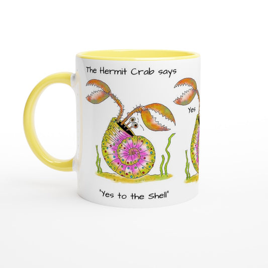 The Hermit Crab says Yes to the Shell. White 11oz Ceramic Mug with Colour Inside